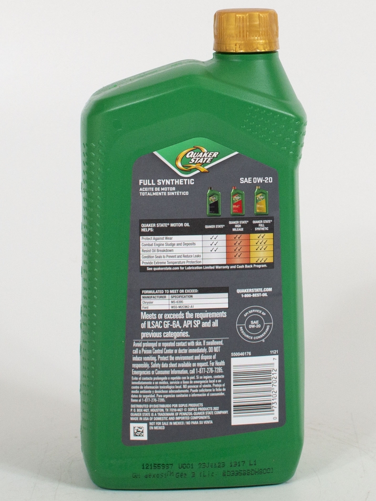 Разработан для обеспечения большей производительности при превосходном расходе смазки и прокачиваемости при высоких и низких температурах (по сравнению с обычными моторными маслами Quaker State и синтетическими смесями).