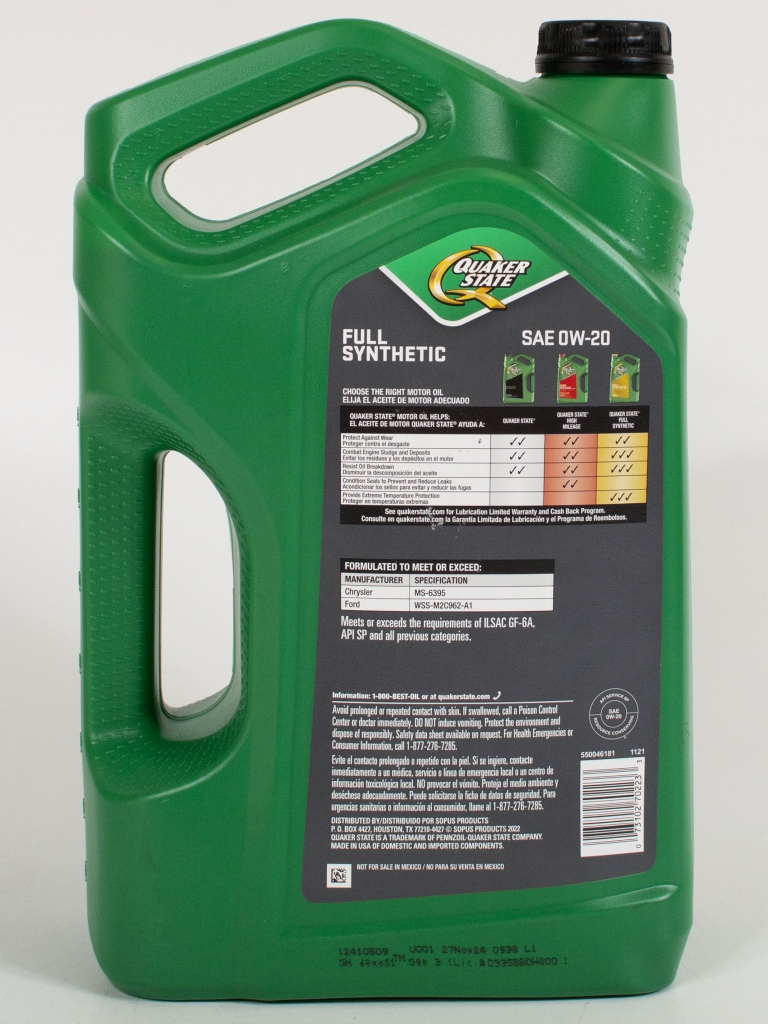 Разработан для обеспечения большей производительности при превосходном расходе смазки и прокачиваемости при высоких и низких температурах (по сравнению с обычными моторными маслами Quaker State и синтетическими смесями).