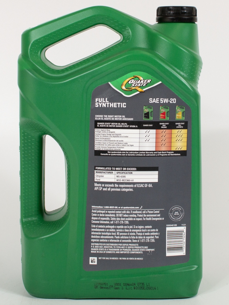 Разработан для обеспечения большей производительности при превосходном расходе смазки и прокачиваемости при высоких и низких температурах (по сравнению с обычными моторными маслами Quaker State и синтетическими смесями).