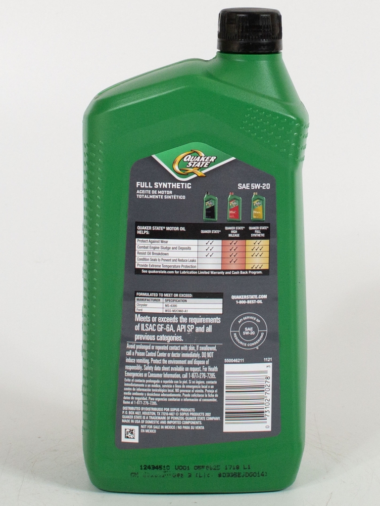 Разработан для обеспечения большей производительности при превосходном расходе смазки и прокачиваемости при высоких и низких температурах (по сравнению с обычными моторными маслами Quaker State и синтетическими смесями).