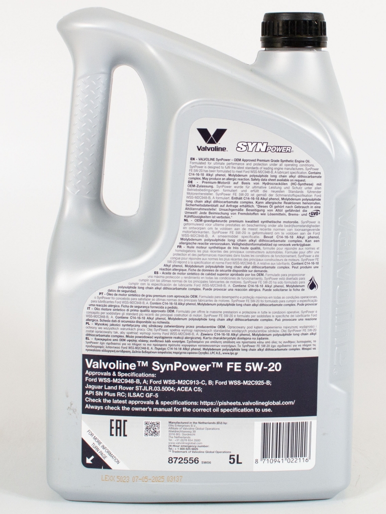 Главная / Моторные масла / Моторное масло Valvoline SYNPOWER FE 5W-20, 5л
