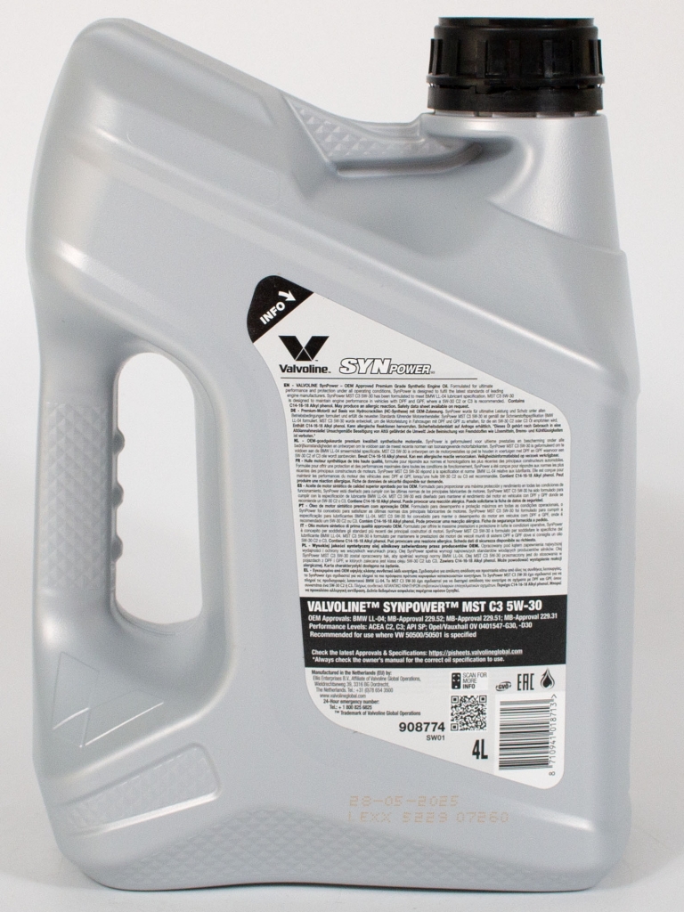 Главная / Моторные масла / Моторное масло Valvoline SYNPOWER MST C3 5W-30, 4л