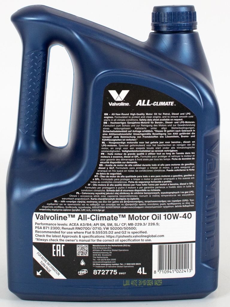 Моторное масло Valvoline All Climate 10W-40, 4л