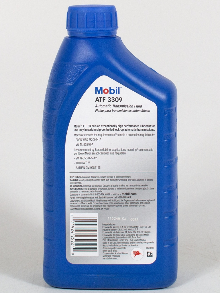 Популярное трансмиссионное полностью синтетическое масло Mobil ATF 3309. Отлично подходит как для жаркого, так и для крайне холодного климата. С легкостью противостоит постоянным нагрузкам на трансмиссию: перевозка грузов и пассажиров, жесткий режим эксплуатации в городе, движение с прицепом. Подходит для автомобилей с большими пробегами. Рекомендовано проведение полной аппаратной замены масла.